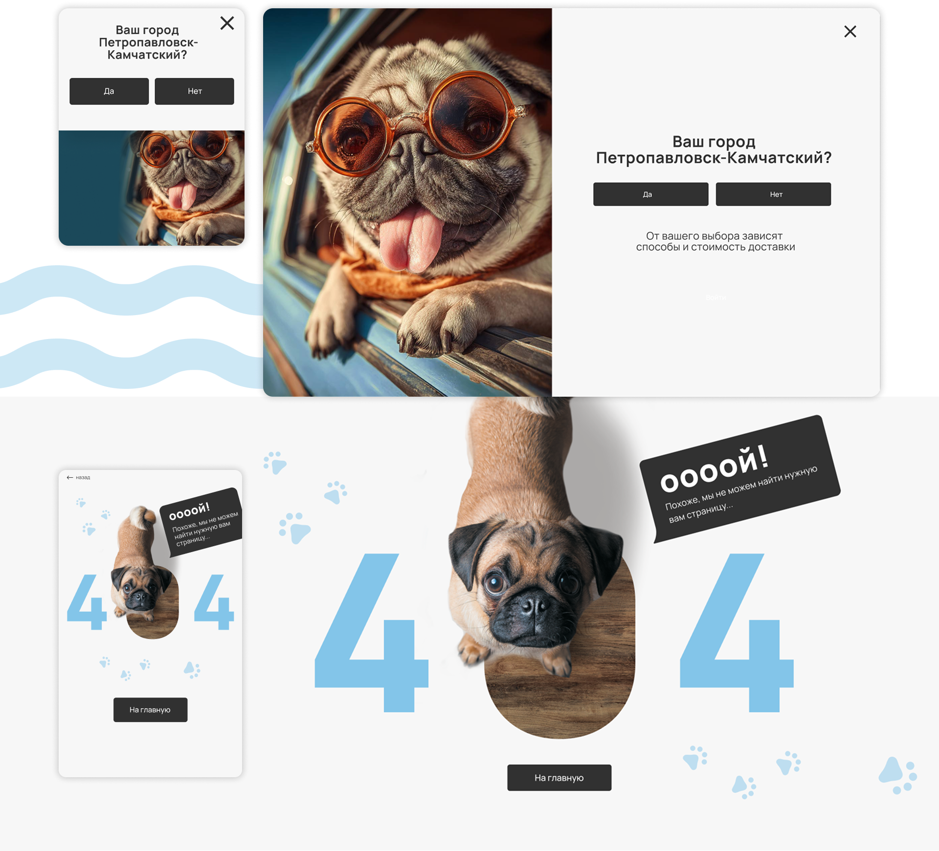 Минималистический дизайн без обилия ярких элементов, перетягивающих на себя внимание. Также были сохранены логотип компании и запоминающийся маскот (собачка мопс).